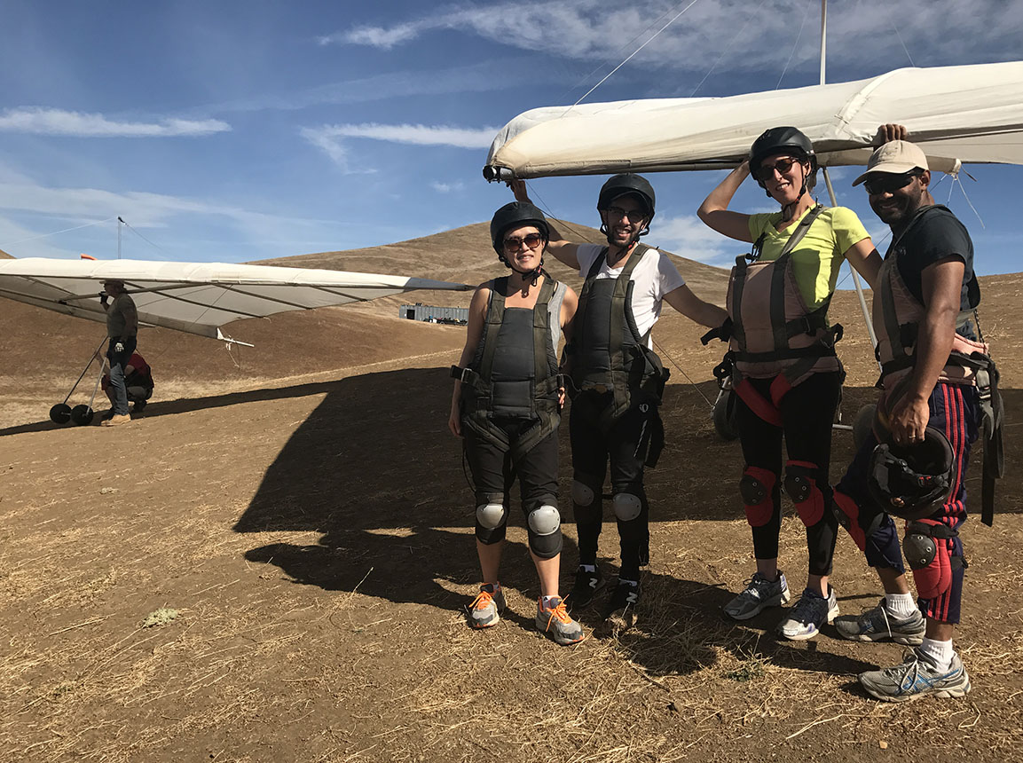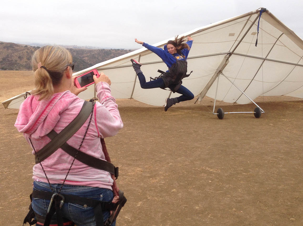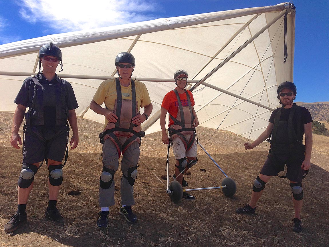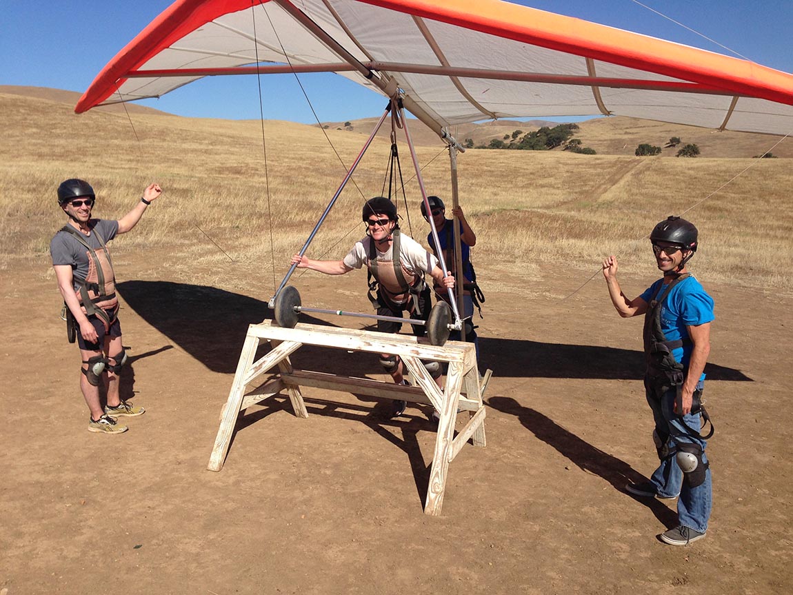Our students have the advantage of flying within the bounds of the protective shell of the control frame of the hang glider whose out stretched wing tips extend well beyond. Many times I thought how much more challenging and dangerous it would be to teach students how to mountain bike for the first time from our bunny hills. It is however very rare when a student does get hurt. And when they do it is a strained muscle or sunburn from being outside for the 4-5 hrs we are out under the sun..