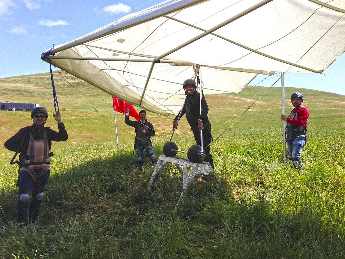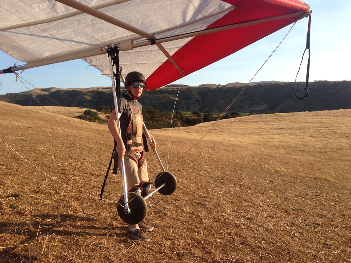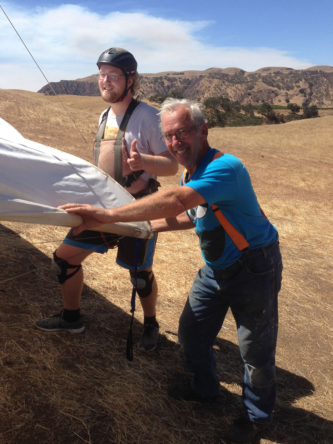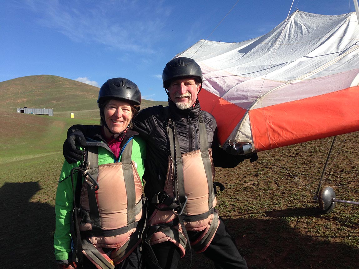 The instruction was with Chandel Hang Gliding but they couldn't teach at Dillon Beach nor their recently new training site at Ed Levin Park in Milpitas because both sites had been closed due to litigation. So Charlie Whitehill, my instructor, decided to teach me and my girlfriend at an unapproved location north of Santa Cruz, at 'Scotts Beach'. Once again I had a great time and knew I had to continue but couldn't because of money. Another five years passed and then in 1987, because Chandel closed their doors, I approached Mission Soaring Center and committed every ounce of my being to learning to fly. The lessons were at Tres Pinos and after 5 of them I received my Hang 1 rating. I continued with lessons at the reopened Ed Levin Park to get my Hang 2 which took 8 more lessons. My instructor was Dave Yount whom I now instruct alongside with for Mission Soaring Center at Tres Pinos, which is to the south, near Hollister.